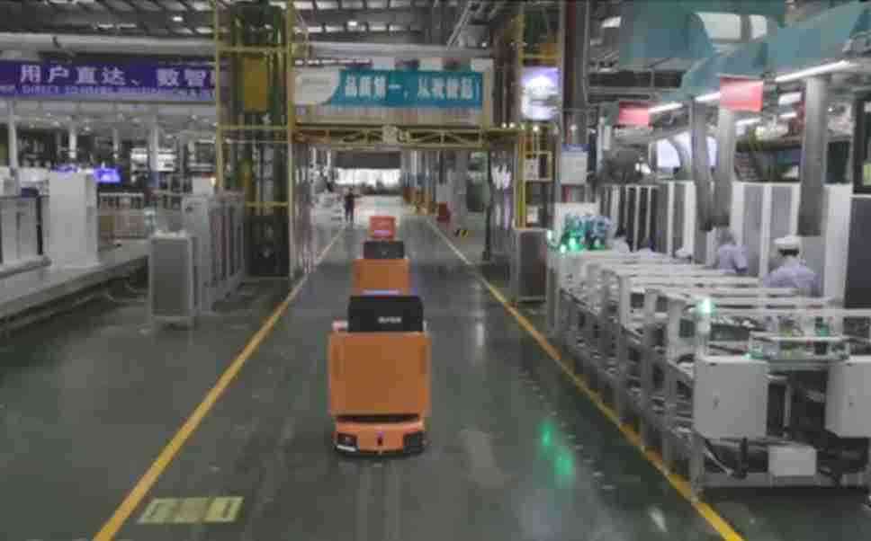 为车载冰箱物流配送打造的智能解决方案,,包含产中物流通过潜伏举升AMR搬运至线边,,,产后成品物流智能仓储,,,,流程包含产中物流智能齐套入库,,,线边安灯叫料AMR智能配送至线边,,,成品入库、、出库,,,通过无人堆高车机器人,,,智能仓储管理替代人工作业管理,,,实现更高存储、、、更高效率、、更具柔性化的解决方案。。
